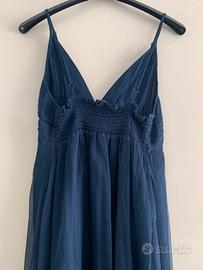 Marca motivi tg. 42 in chiffon di seta blu con ricami sul davanti . Molto bello per una cerimonia o per le serate estive! Indossato solo ad un matrimonio. Gia’ lavato in lavanderia. Non spedisco