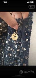 Stile charleston,Taglia 44 lblu cobalto , ottima vestibilità.Indossato un paio di volte, ha qualche paillettes scucita( essendo cucite a mano) vicino la cerniera ma sono facilmente reperibili in merceria. Molto bello e particolare pagato 330€