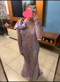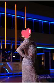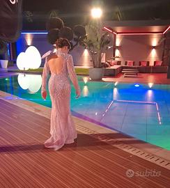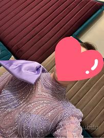 vendo pregiato e unico!!! vestito sartoriale alta moda indossato solo x3 ore,taglia s,disegnato da mia figlia e creato!!! il fiocco sulla spalla si stacca!! pagato 1800€ .Non chiedetemi sconti xche ci sto perdendo 800€ ,non è un vestito confezionato!!!