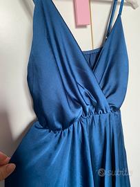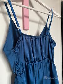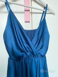 Vestito estivo leggerissimo usato pochissimo di colore blu con cucitura sotto il seno, spalline regolabili e pantaloncini larghi che sembrano una gonna. Taglia unica. Ne ho uno rosa uguale nel mio profilo :) ——>