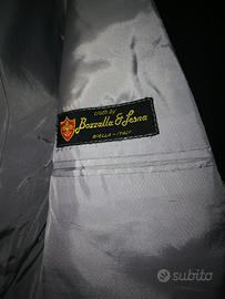 Vestito spezzato estivo completo per cerimonia con gilet. Usato solo in una occasione per cui in buonissime condizioni. Taglia 48/50. Giacca nera foderata grigia, senza spacchi, due tasche interne. Tessuto Monti, confezionato da Bozzalla & Lesna. Pantalone grigio a strisce nere con una tasca posteriore. Gilet grigio chiaro, foderato grigio perla, 4 bottoni e 2 taschini. Per la spedizione, spese a carico dell'acquirente.