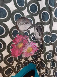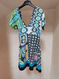 Lunghezza sopra al ginocchio per una persona alta 170 cm. Misura lunghezza dalla spalla 88 cm. Taglia sul vestito M. Colori leggermente sbiaditi . Ampio scollo sia davanti che dietro.