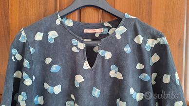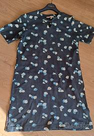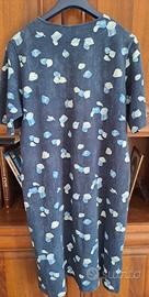 Il vestito riporta taglia 50 ma si è ristretto dopo esser stato lavato; taglia 46 (abbondante), lunghezza cm 96, tra la ascelle cm 52.