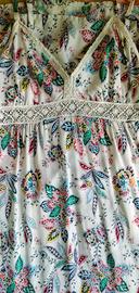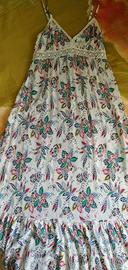 Vestito lungo 100% viscosa, colore bianco, motivo floreale con spalline regolabili.