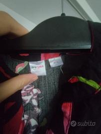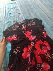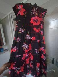 Vestito Lungo/Midi Fantasia Floreale a Balze - Nero e Rosso Descrizione: Vendo bellissimo abito da donna con una vivacestampa floreale a fiori grandi(papaveri/rose) su base nera. Il modello è perfetto per la stagione primaverile ed estiva o per un'occasione speciale. Caratteristiche principali: Design:Modello a balze con vestibilità fluida e morbida. Dettagli:Maniche corte con leggero effetto volant e gonna ampia che regala movimento. Colore:Base nera con fiori nelle tonalità del rosso vivace e del rosa fucsia. Stile:Romantico e versatile, ideale sia con un paio di sandali bassi per il giorno che con i tacchi per la sera. La taglia è una M ma può stare anche a chi porta la L