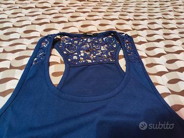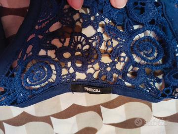 Vendo per inutilizzo, vestito estivo marca Tezenis TAGLIA UNICA. Colore blu navy, con ricamo su spalline e schiena. Incrociato sulle spalle e spacchi alla lunghezza su entrambi i lati.