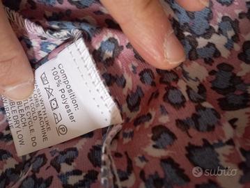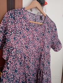 Vestito fantasia come in foto estivo mai indossato x misura errata con bottoncino dietro la schiena e piccolo motivo arricciato sulle maniche ...veste morbido e ampio....lunghezza al ginocchio ...misura M