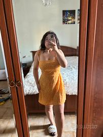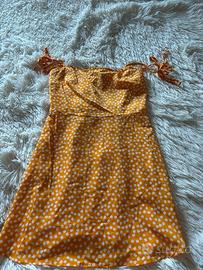 Vestito estivo corto con una stampa floreale vivace. - Scollo a quadretti - Spalline sottili - Tessuto leggero e traspirante