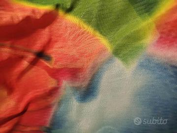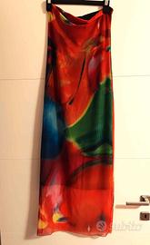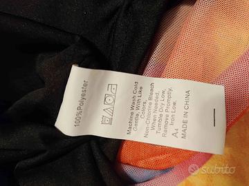Come nuovo, taglio dritto, nessuna imperfezione, fodera interna nera, in poliestere come da etichetta in foto, taglia M, colori vivaci, leggermente aderente.