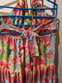 mai indossato Vestito estivo bellissimo Taglia unica Marca Antica Sartoria Gaetano Cinque Perline al seno Nappine sul bordo del vestito e all'allacciatura Si può usare anche come copricostume