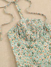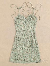 Vestito verde menta con decorazione floreale a margherite, con spalline sottili regolabili annodabili.