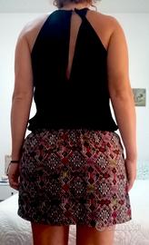 Stampa multicolor con motivi geometrico, Scollo a halter con chiusura dietro al collo.
