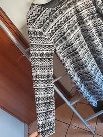 Vestito a maniche lunghe con fantasia etnica in bianco e nero.