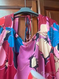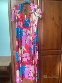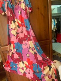 Vestito lungo, fantasia floreale mezza manica, scollatura quadrata e laccio posteriore che chiude la scollatura.