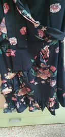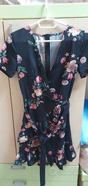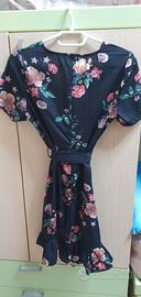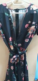Abito molto bello colore nero floreale Scollo a V profondo, molto scollato Corto e con cinturino MAI indossato, NUOVO di zecca