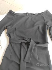 Vestito donna formale con scollo rotondo e cintura in vita. lunghezza 81cm