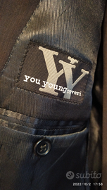 Vestito cerimonia blu scuro con righe riflessi grigio di fresco lana utilizzato solo una volta praticamente nuovo. Taglia 46/ 48 modello slim per giovani