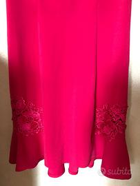Vestito lungo a maniche corte fucsia. Parte finale con balze.