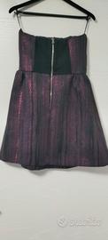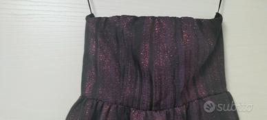 Vestito senza spalline glitterato taglia S colore Nero/Viola, gonna a palllocino. Tessuto sostenuto, come nuovo. Etichetta tagliata quindi senza brand