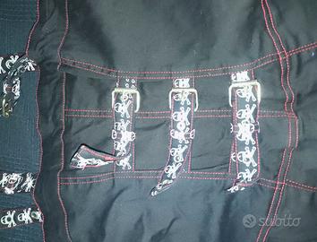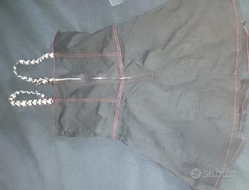 Vestito nero Criminal Damage con inserti rossi e teschietti bianchi, con manicotti e cinghie, misure in vita 40cm, seno 44cm, lunghezza 65cm, da provare.