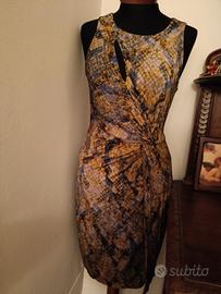 vestito Guess con una fantasia che ricorda la pelle di serpente. Il taglio asimmetrico e il drappeggio sul fianco lo rendono unico.