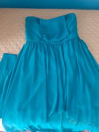 Vestito verde a fascia, con bratelle, lungo dietro e corto davanti. Taglia 40. Usato poche volte. Abito da cerimonia.