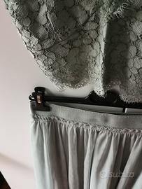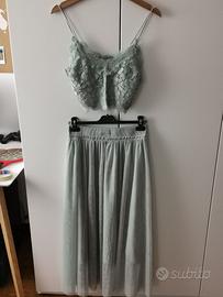 Vestito hm verde latte menta tg M, utilizzato per matrimonio, riutilizzabile e ricombinabile. Formato da crop top e gonna. Colore pastello, molto delicato.