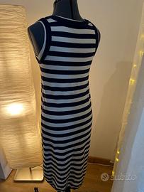 Vestito a righe di cotone blu e bianco senza maniche (lunghezza fino al polpaccio).