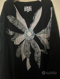 Vestito in felpa di cotone a maniche lunghe. Collo a V. Colore nero. Ottimo stato