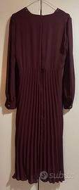 La parte inferiore del vestito è plissettata. La silhouette è delicatamente sagomata.