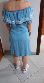 Vestito in jeans leggero, marchio Pepe Jeans taglia S. Si può portare con spalle coperte oppure con scollo a barca. Lo scollo ha l'elastico. Usato pochissime volte, in ottime condizioni. #patriziapepe #pepejeans #abito #vestito #S #jeans