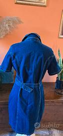 Vestito in jeans lungo di cotone elastico con cintura colore blu scuro, taglia X Large molto comodo pratico per tutti i giorni con maniche corte, come chiusura davanti ha dei bottoni da sopra a sotto.