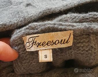 Vendo vestito da donna in lana, marca Freesoul, grigio con maniche corte e collo alto, motivo a trecce.