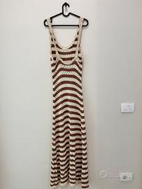 Vestito in maglia crochet a righe, elastico e scollato sulla schiena. Molto sexy.