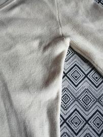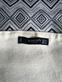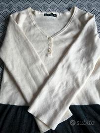 Taglia M che veste piccola (in pratica una S), stile dritto ma non aderente, maglia rasata (straight pattern), collo a V con serafino.