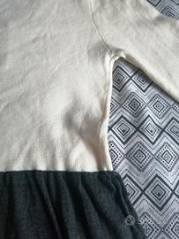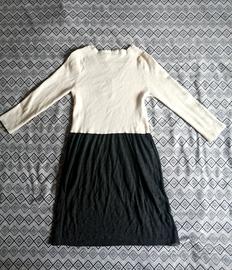Abitino in maglia casual, bicolore top bianco caldo e minigonna antracite, manica lunga, 65% cotone 35% poliestere.