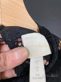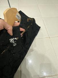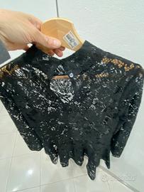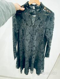 Vestito interamente in pizzo nero Collo leggermente alto, manica lunga Lunghezza sopra il ginocchio Piccoli bottoni dietro il collo Non è aderente Da indossare con un tubino sotto perché interamente trasparente Svasato sotto Stile dark emo gotico vampir Taglia S ma veste anche M Consegna gratuita zona di Arezzo o spedizione gestita da Subito