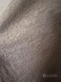 Bellissimo vestito elegante ,spalle scoperte ,tutto foderato ,in pizzo Chantilly’rosa cipria ,,con lunga banda di silicone sul petto per aderire perfettamente e cerniera sul retro .Taglia 42 .Indossato una sola volta per una cerimonia .