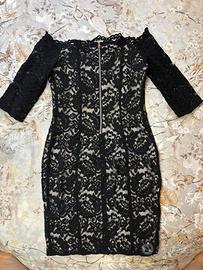 Vestito in pizzo nero Liu Jo taglia 42 scollatura a barca, manica a 3/4 e lunho fino al ginocchio. Indossatao solo una volta.