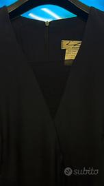 Vestito di Genny, in seta, con inserto sullo scollo a V in pizzo liscio, blu notte, gonna leggermente svasata taglia 42 vestibilità 42/44. Indossato una sola volta ottime condizioni.