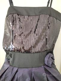 Vestito in taffeta molto elegante, corpino nero tutto pieno di palettes, la gonna sfuma dal nero al viola, come nuovo indossato una sola volta.