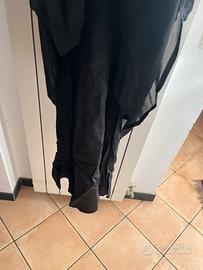 Abito nero, lungo 133cm misuata dalla spalla. Quest’abito estivo e composto da un sottoabito nero con 3 veli di tulle nero applicati sul sottoabito a scendere che donano eleganza e raffinatezza. Misura italiana 50 ma certamente puo essere indossato con disinvoltura dalla 46 in avanti. Le maniche corte in solo tulle donano eleganza e charme . L’abito è stato usato in poche occasioni e va rinfrescato. Perfetto in ogni sua parte.