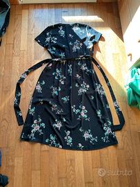 Bellissimo vestito nero con stampa floreale firmato H&M, taglia EUR 44. Modello incrociato con cintura da annodare in vita che valorizza la figura. Tessuto leggero e fluido, perfetto per la primavera e l’estate.