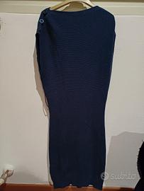 Vestito di media lunghezza, blu, tessuto tipo lana, bottoni sulla spalla sinistra
