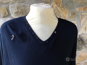 Bel vestito con brillantini intorno al collo, infondo ai lati ćè un piccolo spacco. Bellissimo materiale 88% Viscosa e resto cotone. Scende molto bene la stoffa. Taglia 50. Lunghezza 95cm ,spalla 50cm.Buona vestibilità.Marca TEMPICO