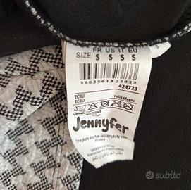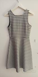 Vestito marca Jennifer, fantasia geometrica sui toni del grigio e del bianco. Scollo particolare. Taglia S. Misure: * Spalla-spalla 28 cm circa; * Ascella-ascella 37 cm circa; * Lunghezza da ascella 67 cm circa. Condizioni pari al nuovo.