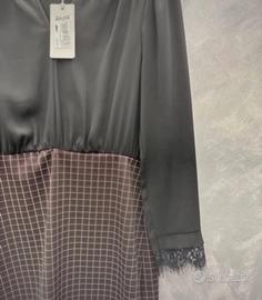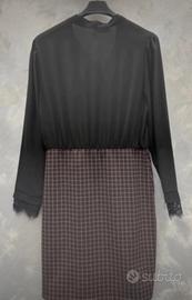 Vestito viola e nero con pizzo sulle maniche. Molto semplice ma anche elegante. Taglia M