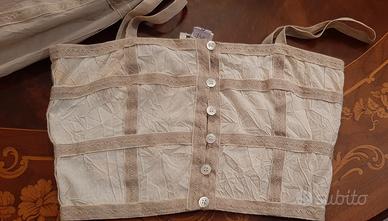 Elegante gonna con corsetto Krizia vintage in color beige, in ottimo stato. Tessuto leggero e confortevole. Design a balze. Dettagli ricamati. 67% poliammide 33% cotone taglia 40 LA VITA E' MOLTO STRETTA