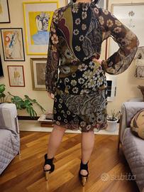 vestito effetto vedo e non vedo maniche lunghe, ma trasparenti, disegno particolare con fiori adatto a tutte le stagioni