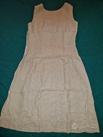 vestito con ricamamo, in trasparenza, puro lino, fresco, usato poco taglia 46